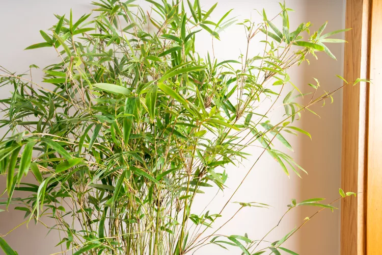 Can You Grow Golden Bamboo Inside? This plant can be grown indoors, but growing bamboo inside is not easy. To grow bamboo successfully indoors, you need a sturdy container and ample light and humidity. Bamboo needs at least 6 hours of light to thrive. Put bamboo in your sunniest window. Depending on the type, it can grow up to 8 feet tall; lower light usually means slower and less growth. Other common varieties that grow indoors in containers include Pleioblastus viridistriatus (dwarf green stripe bamboo) and Pseudosasa japonica (arrow bamboo). Dwarf green stripe bamboo grows to 4 feet tall but usually stays about 2 1/2 feet tall indoors. Arrow bamboo grows taller, does well in shade or full sun, and can thrive in shade better than most bamboo species. How to Grow Golden Bamboo Indoors Regular watering and feeding will make up most of your plant maintenance for growing bamboo indoors. To maintain the soil moisture level that bamboo likes, you might have to water your container plant more than once a week. But especially for an indoor plant where the climate stays constant, you should be able to establish a predictable care routine reasonably easily. Sunlight Outdoors, bamboo prefers a spot that gets full sun to partial shade. Indoors, keep your bamboo by your brightest window to get natural sunlight, and rotate the pot weekly to ensure all sides of the plant get light. If it's too shady for bamboo, the plant will become weak, not growing to its fullest potential or developing its brilliant color. It should not need supplemental or artificial lighting as long as it's placed in a sunny window. Temperature and Humidity Golden bamboo is known for its cold tolerance. It can survive temperatures down to 5 degrees Fahrenheit for a short time. However, prolonged cold weather can cause the plant to drop foliage and might eventually kill it. The plant prefers typical room temperatures between 60 and 80 degrees Fahrenheit. Keep it away from air conditioner and heater vents. The cold drafts from an air conditioner or drying heater vents can weaken the plant. These plants thrive in humid air but have adapted to indoor dryness if watered well. Most bamboos prefer a humidity level of 50% to thrive. Watering Bamboo has some drought tolerance once established and can handle soggy soil in short bursts. However, sitting in pooled water can rot the roots and kill the plant. The plant ideally should have evenly moist soil. Test the soil by sticking your finger an inch or two in it and watering it whenever it feels dry. Never let the soil dry out completely. But during the winter months, slightly cut back on watering. Fertilizer Feed your bamboo a balanced liquid fertilizer once a month to maintain optimal nutrients in your container plant’s soil, following label instructions. It also can be helpful to mix some organic compost into the soil, especially in the spring, to promote healthy plant growth. Pruning and Maintenance Bamboo typically doesn’t require pruning. You can remove old canes at their base if they begin to look unsightly. Remove new shoots as they pop up from the soil to limit your plant’s growth and spread. Container and Size Consider getting a metal or hardwood container since bamboo can break through plastic or terra-cotta, and ensure it has ample drainage holes. Pick a heavy pot so that it can anchor the weight of the bamboo canes. You will need at least a 10-gallon container to start. And if you don't want to repot it yearly, begin with a 20- or 30-gallon pot. Bamboo tends to send runners, which likes a pot that is wider versus deep. Clumping types of bamboo do better in a container with equal dimensions. Potting Soil and Drainage This plant tolerates various soil types but prefers organically rich soil with good drainage. It does not like soggy soil. A commercial potting mix or a mixture of peat moss and perlite should be fine for container plants. Potting and Repotting Golden Bamboo When starting with a small nursery bamboo plant, you can use a pot that is 12 inches wide and deep. You can add rocks or gravel to the bottom of the pot to anchor the plant’s weight. Place the root ball in the pot and fill it around it with a loose, nutrient-rich potting mix. You can mix in some compost to encourage growth. Then, water the bamboo well. You might need to move your bamboo to a larger pot every year or two once the roots have spread through the entire pot and you see them coming out of the holes in the bottom or poking up out of the soil on top. Don’t allow your plant to remain in a pot that’s too small for very long, as it won’t get enough nutrients to stay healthy. An indoor plant typically will do fine being repotted at any time of year, but the start of the growing season in the spring, when the plant is revving up its growth, is generally the best time for repotting. Moving Golden Bamboo Outdoors for the Summer Bamboo does its best growing outdoors; hence, it can move outdoors for the warmer months. Considerations Considering golden bamboo can grow up to 20-plus feet tall, you might not want your plant to grow vigorously taller than your ceilings can accommodate. Outdoor conditions are closer to ideal, making overgrowth a risk. If you want to move it outdoors, slowly acclimate bamboo to outdoor conditions. The sun will be stronger, and the temperature swing may also stress the plant. Only bring it outside when temperatures are consistently around 60 F to 80 F, similar to indoors. To harden off the plant or acclimate it, bring it out for one to two hours at a time for a week, then gradually increase by three to four hours the following week, slowly adding more time each week. Start by placing the plant in a partial sun spot in the first few weeks. Full sun might be too much for the plant to handle in the first few weeks of going outdoors. Also, the plant does not like soggy soil, so ensure your plant has well-draining soil and ample drainage holes to accommodate rainy outdoor day